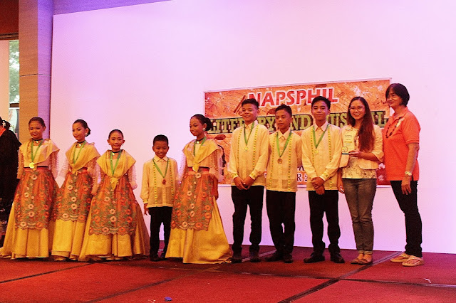 The Bahaghari Cultural Dance Group receive their bronze medals and a plaque during the awarding ceremonies of the National Alliance of Private Schools - Philippines Literary-Musical Competition.